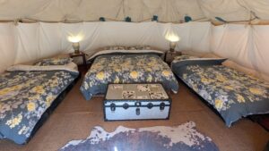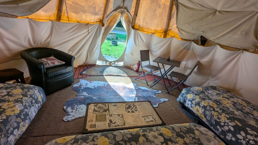 The Tipis boast a captivating structure and are painted with Native American patterns and designs creating a lovely ambience from both inside and outside of the Tipi. Each Tipi is luxuriously furnished to offer an authentic glamping experience.